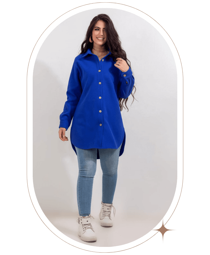 تألقي بإطلالة ناعمة ومريحة مع هذا الشميز العصري المصنوع من خامة فريسكا الخفيفة والمميزة. يتميز الشميز بتصميم عملي بأزرار كاملة